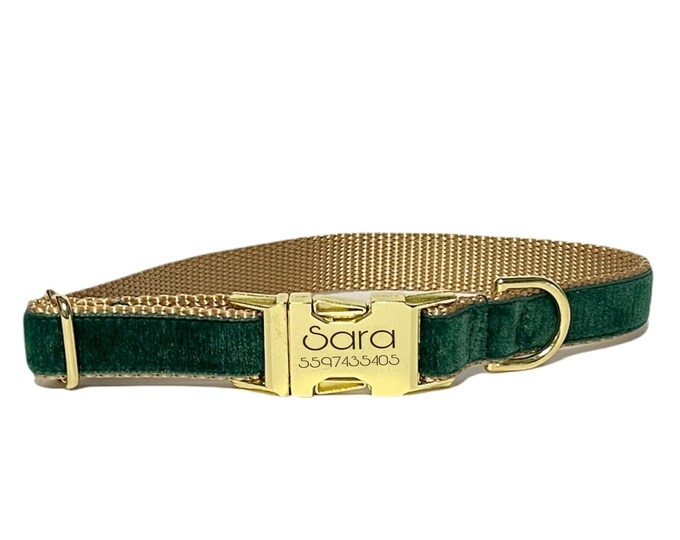 3/8" Dainty Velvet Collar in Moss Green | Small Personalized Dog Collar | Handmade in the USA