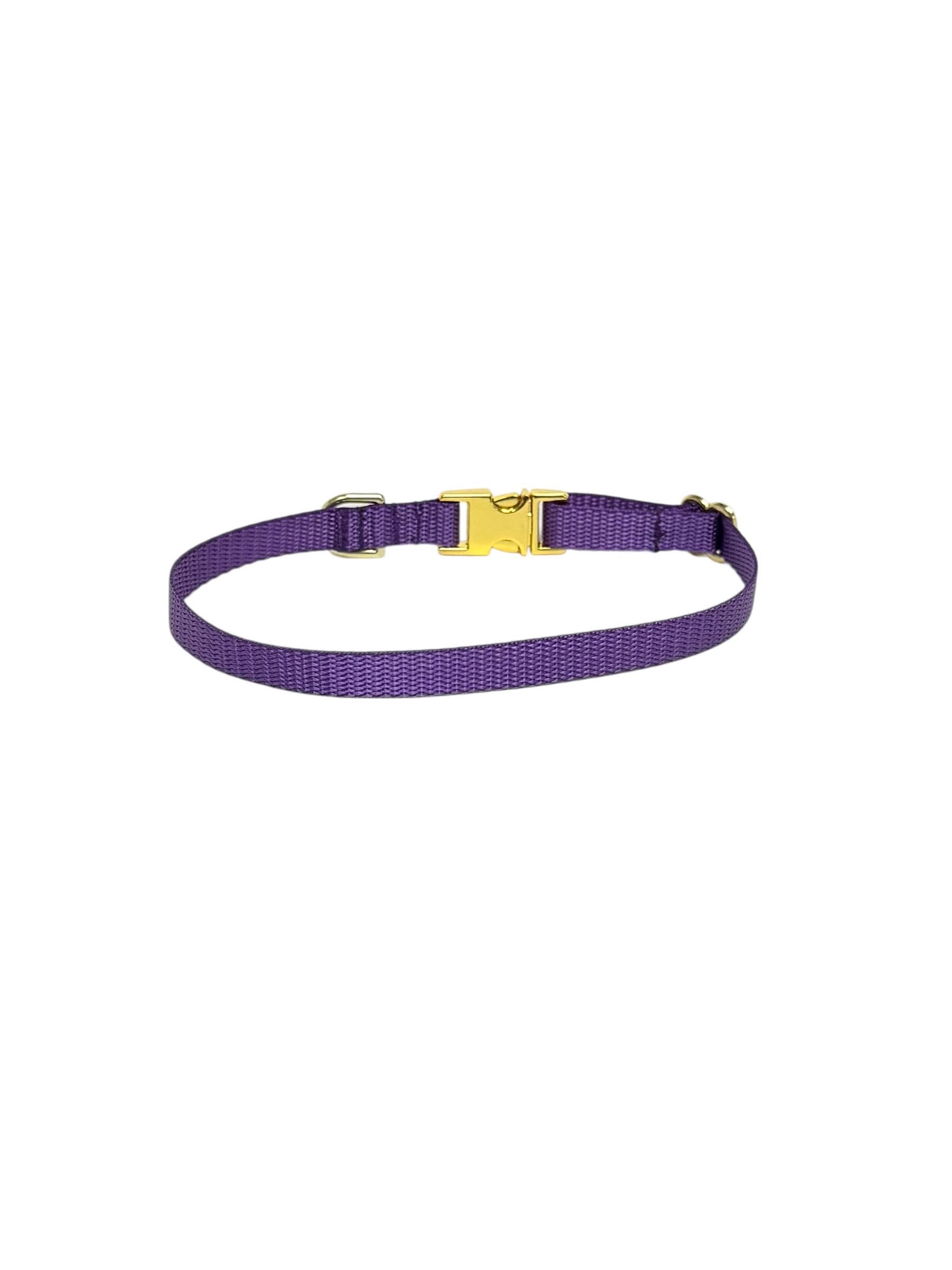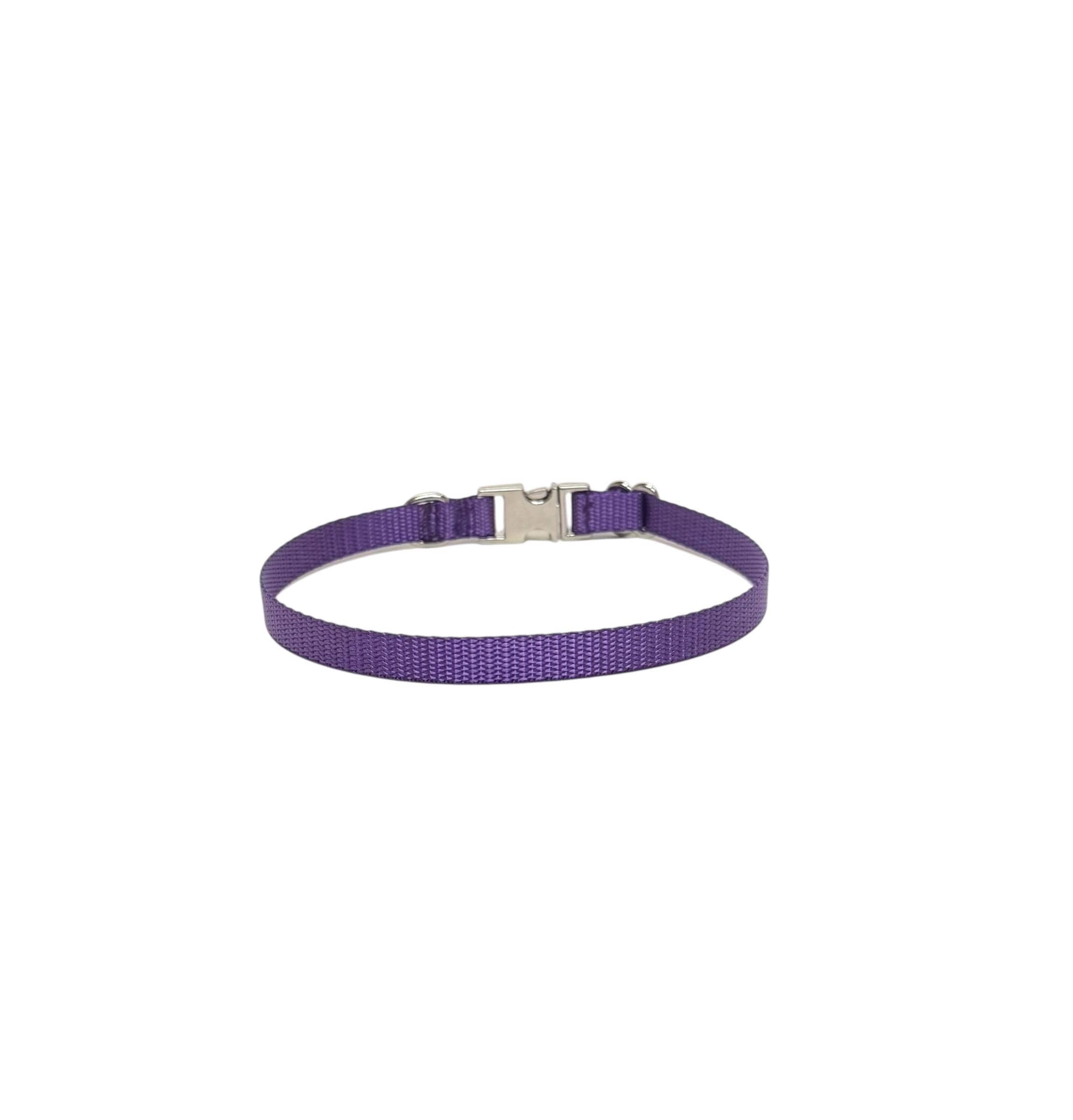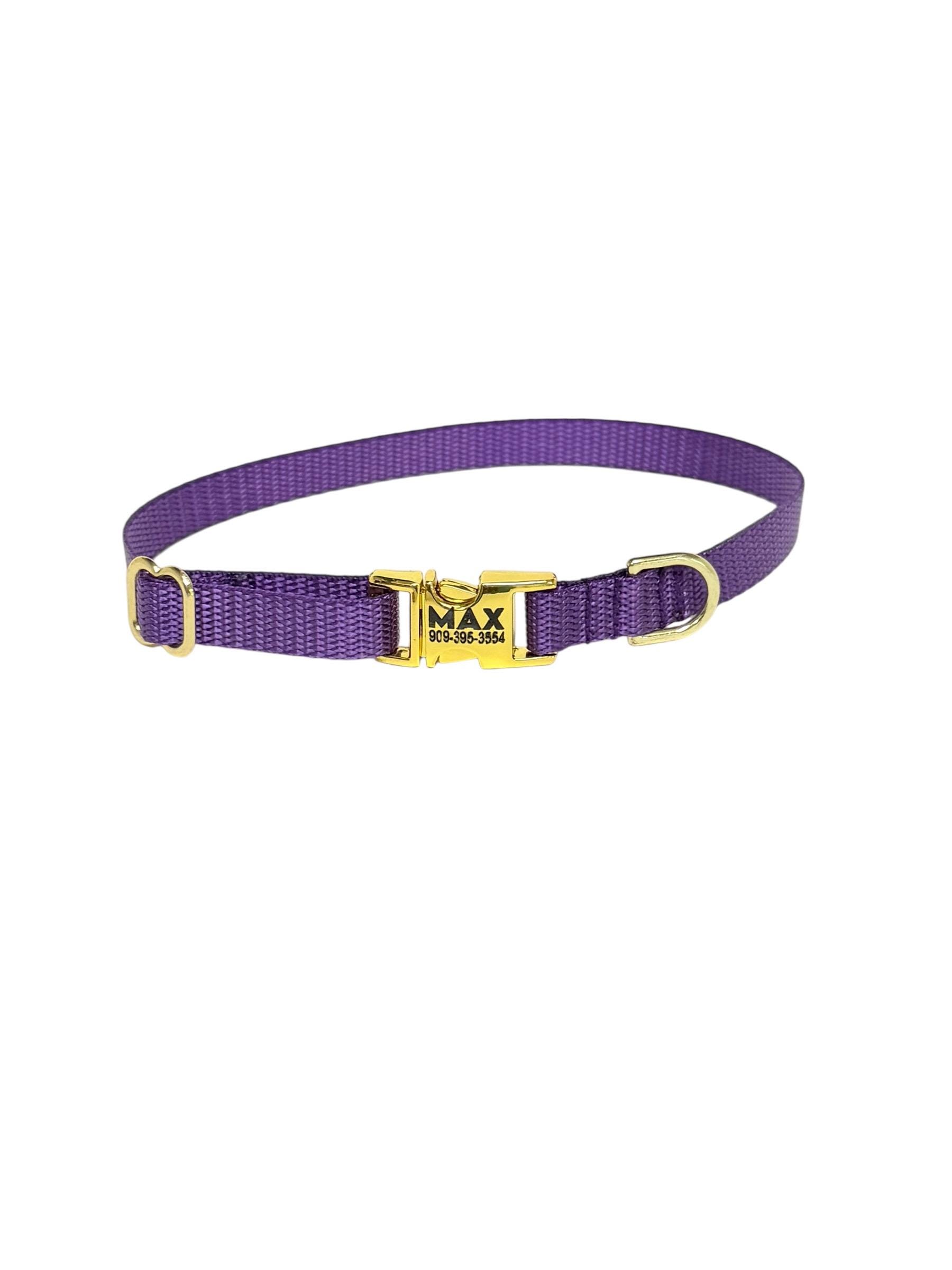 Purple Dainty Personalized Nylon Dog Collar. Plastic is not personalized but being offered for those looking for something lighter.