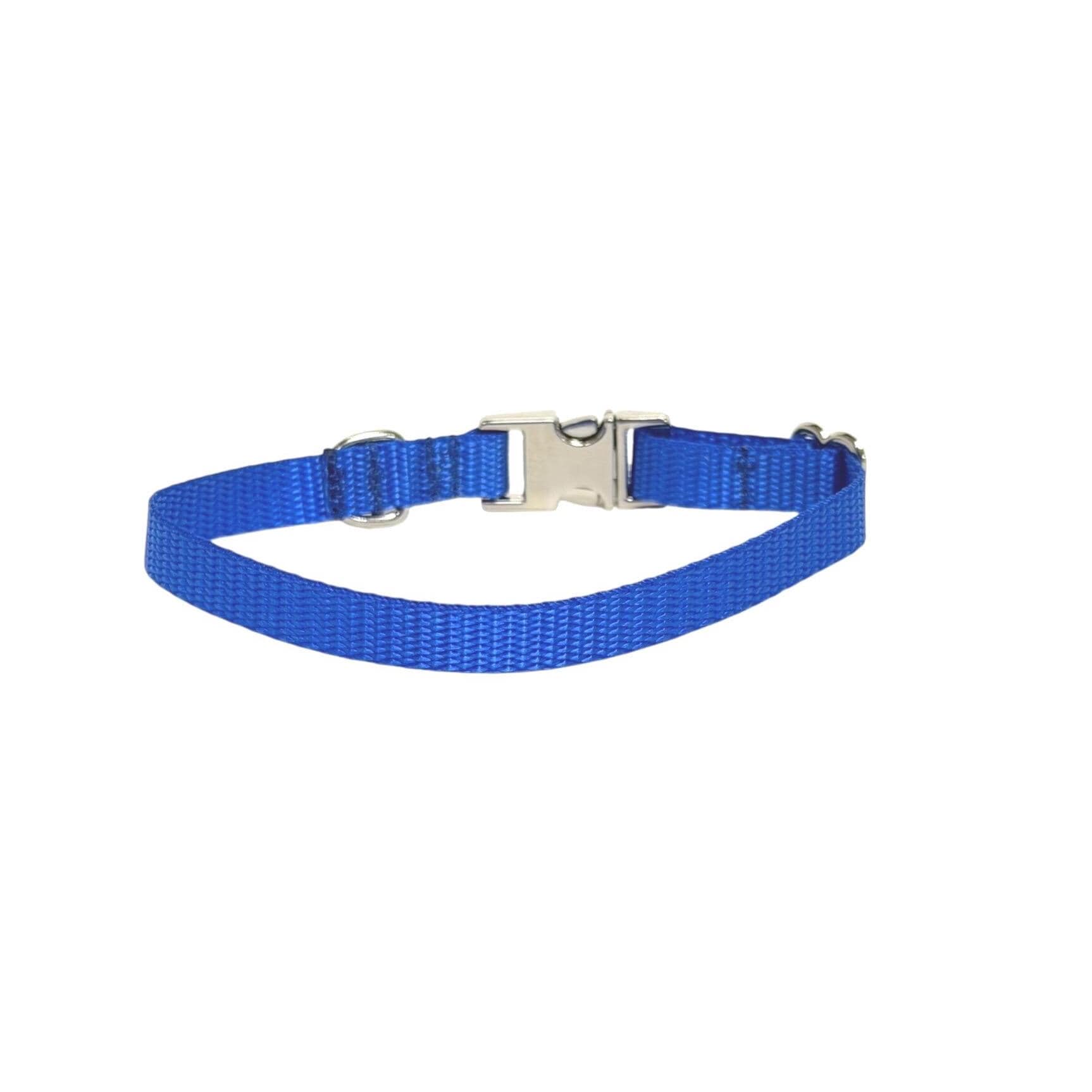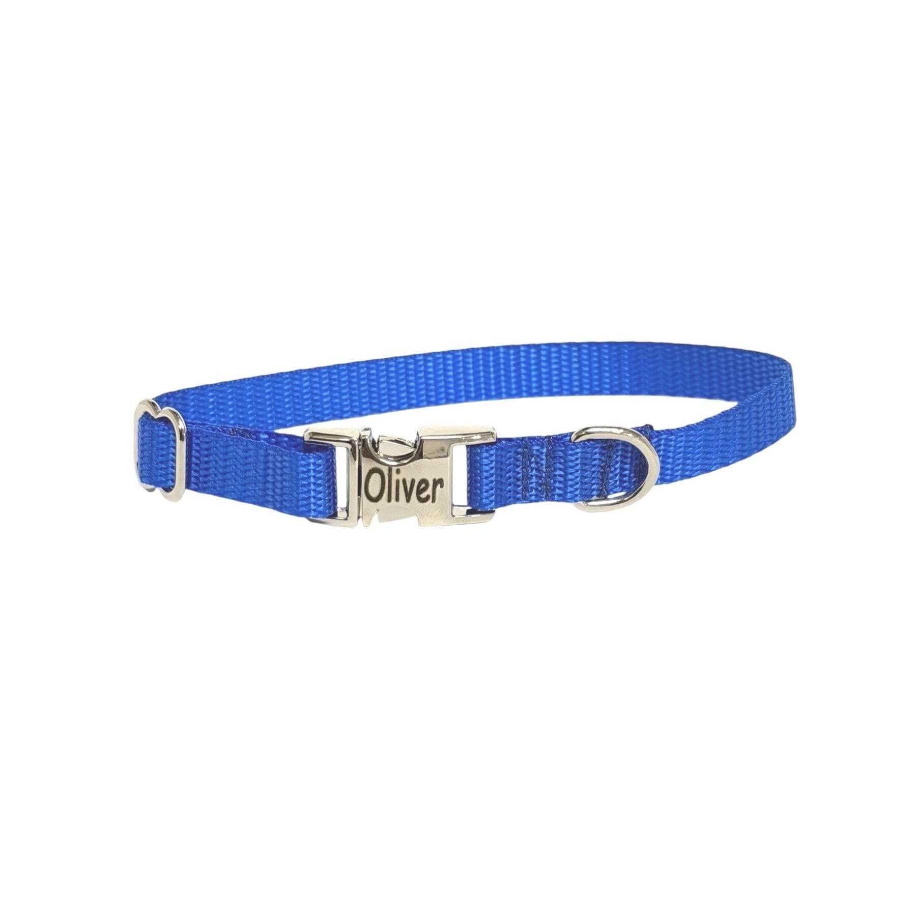 Royal Blue Dainty Personalized Nylon Dog Collar. Plastic is not personalized but being offered for those looking for something lighter.