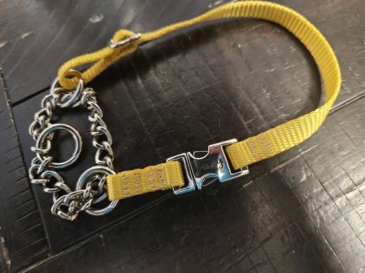 3/8” wide Dainty Chain Martingale Nylon Dog Collar with a Buckle.