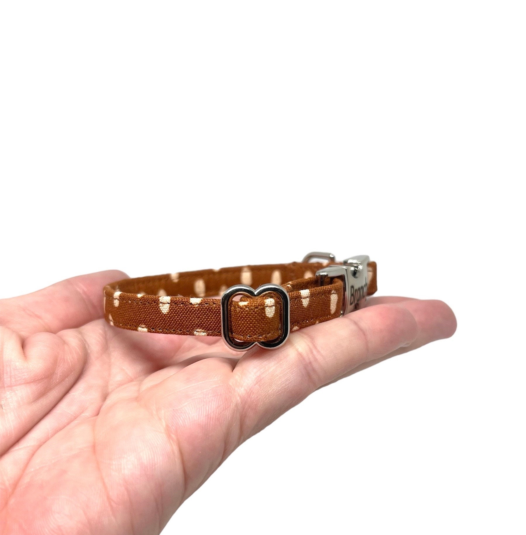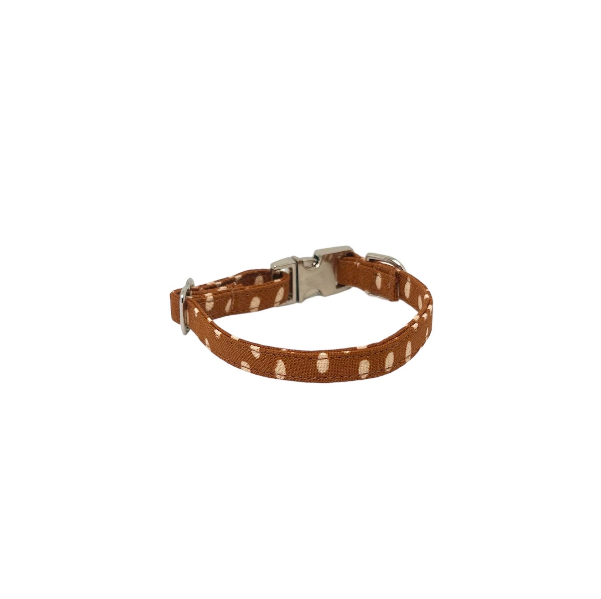 3/8" Caramel Polka Dot Fabric Collar in a thin 3/8 inch width with a personalized buckle option.