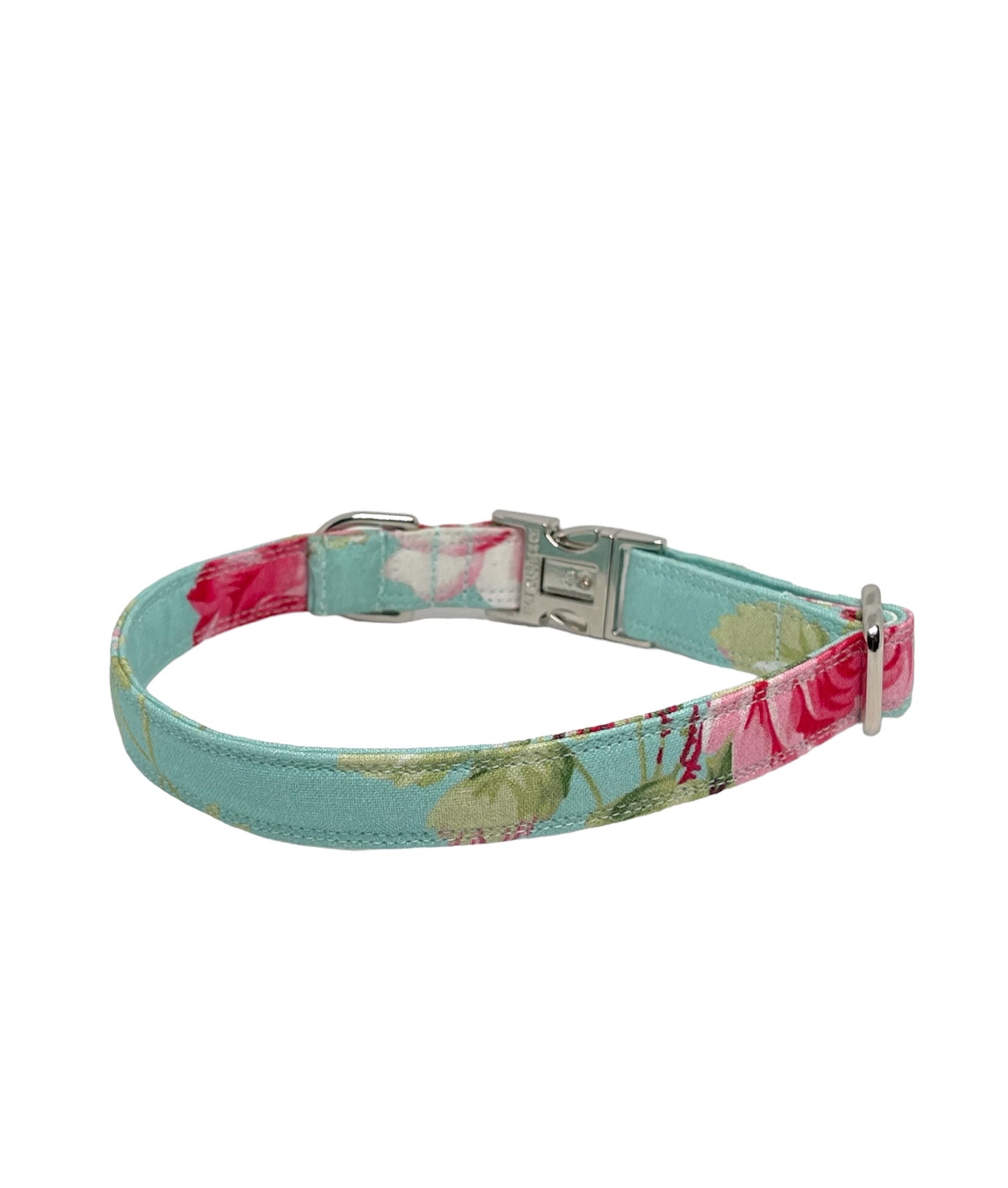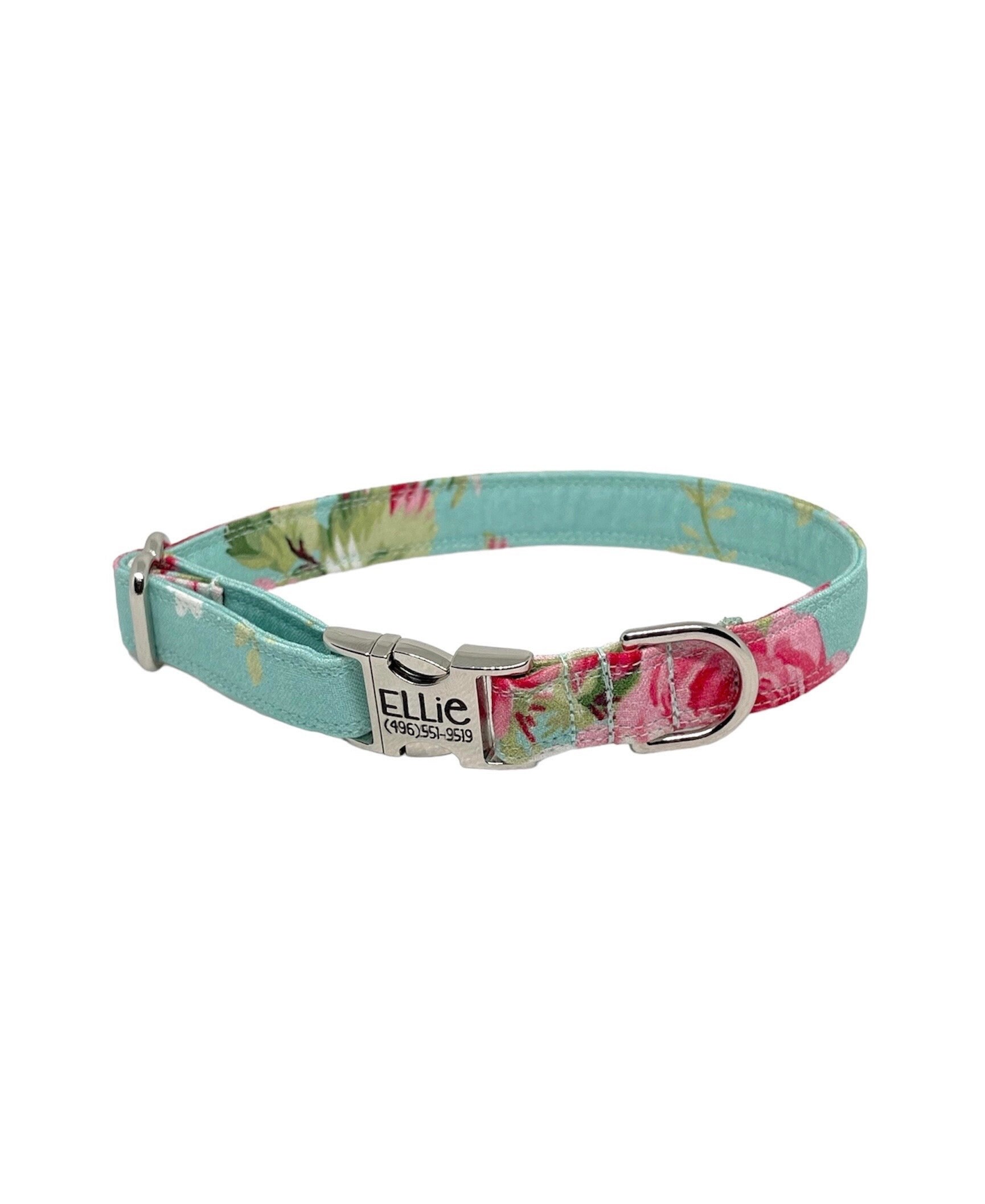 Light Blue Floral Fabric Personalized Dog Collar. We have enough for one more collar.