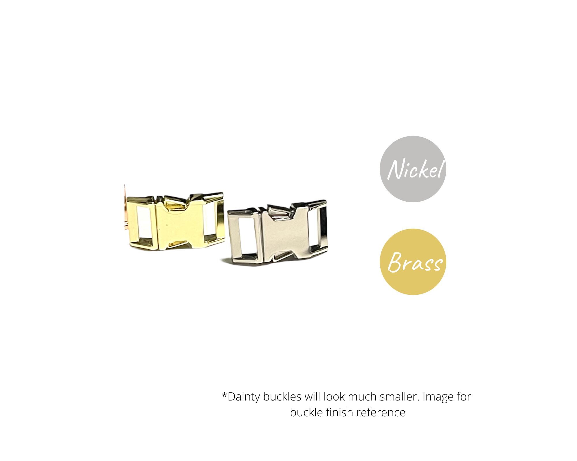 ◆GENERAL HARDWARE DISCLAIMER◆ Brass & Rose Gold hardware is plated so with time it will be begin to fade and lose it's gold color. Dings and scratches are inevitable on polished buckles depending on the energy of the dog. We won't replace a buckle because it has been scratched by dog use.Buckles have a spring mechanism which I recommend putting on and taking off with care to not break the spring. Buckles are guaranteed for up to 2 months so if it does break, we will gladly replace it, if the collar is returned to us within that time frame to us.