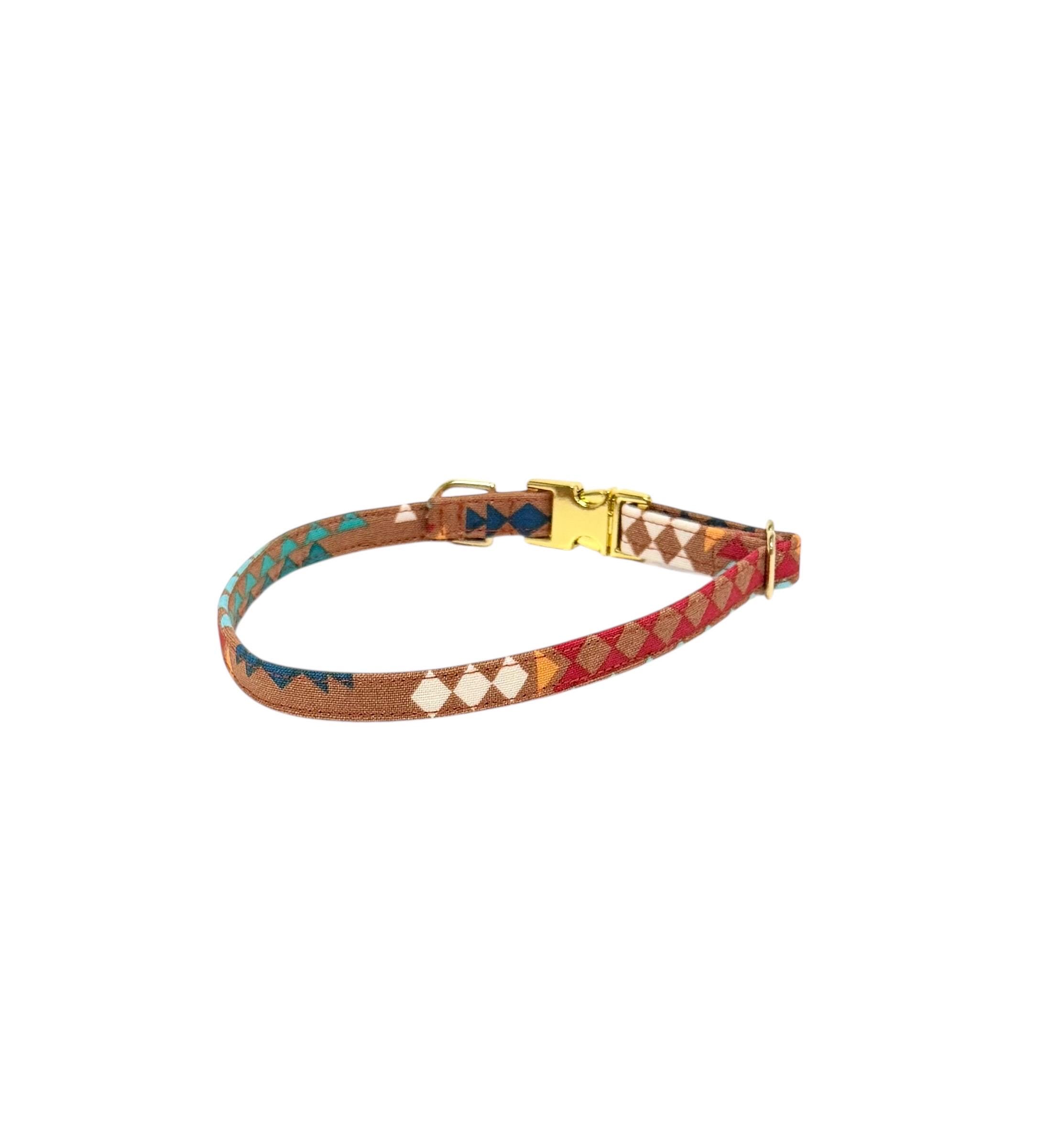 NEW! 3/8" Rust Tribal Print Collar. Personalization optional. Ideal for tiny to small dogs. Plastic buckle now available but cannot be personalized, only our metal buckles.