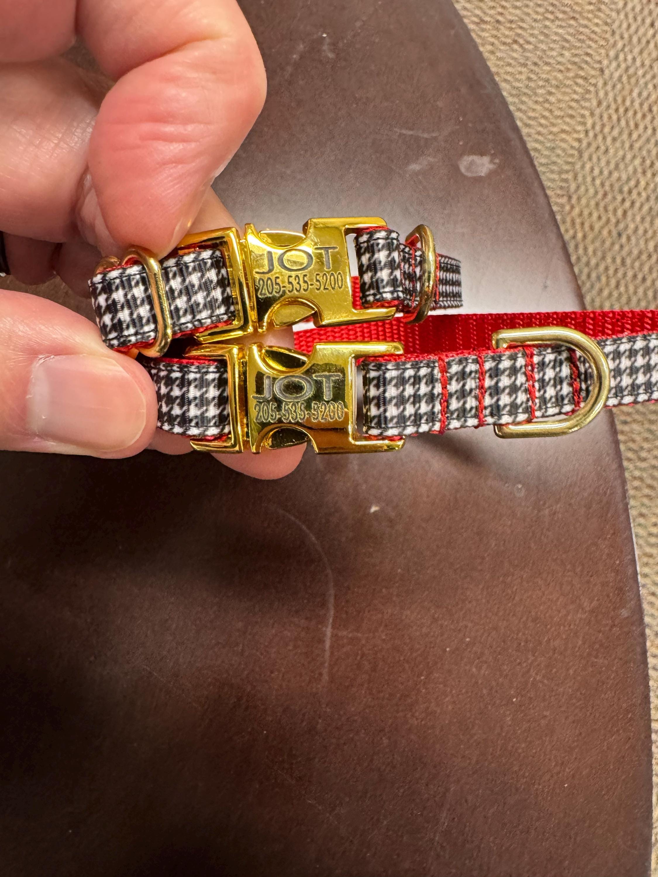 Houndstooth Personalized Dog Collar in Red. The perfect Bama collar for any Crimson tide fan. We just added 3/8" to this listing. It will look similar to the 1" with no red trim)